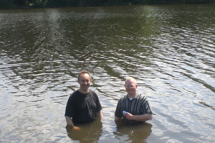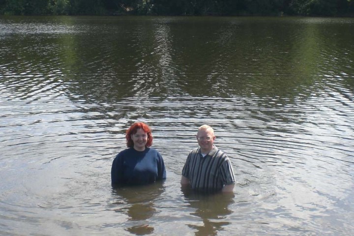 We arranged for Sergei to be baptized in the bath house, and we tried to convince Irina to be baptized at the same time. She talked to Sergei, and they decided that they both wanted to go to the river for baptism. On a beautiful Sunday afternoon, we went down to the banks of our Oka river here in Oryol, and they were happily baptized! Many of our people came along to watch.